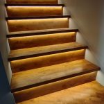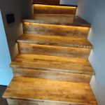Лестница из массива берёзы с подсветкой — обшивка металлического каркаса