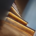 Особенностью проекта стала интеграция светодиодной подсветки. В каждую ступень выполнена точная фрезеровка пазов под LED-ленту. Источник света скрыт в теле лестницы и мягко подсвечивает подступенки, обеспечивая безопасное передвижение в тёмное время суток.