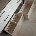 Под кухонным гарнитуром изготовлены выкатные ящики для хранения овощей. Конструкция рассчитана на ежедневную эксплуатацию: надёжная механика, удобный доступ и прочные соединения.